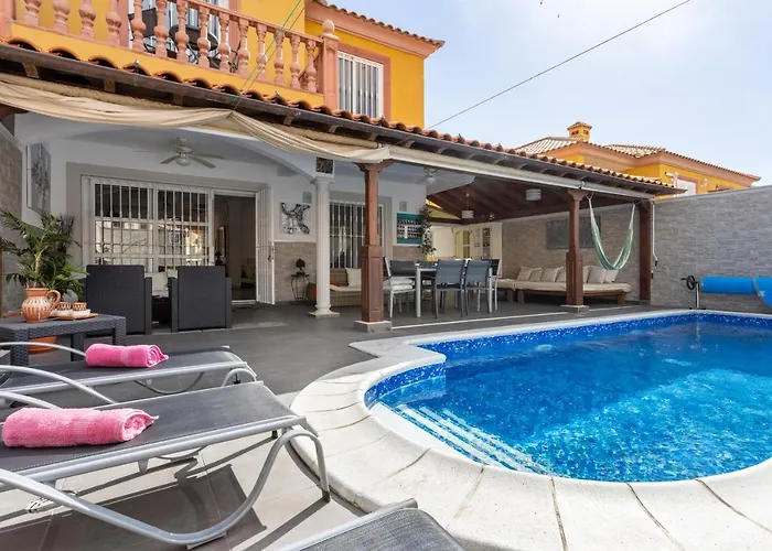 Luxury Villa With Private Pool With Aircon,Playa Del Duque se nachází asi 15 minut autem od letiště Tenerife Sur.